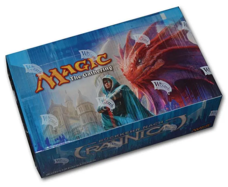 Magic Booster-Display mit Sammelkarten der Serie Rückkehr nach Ravnica in Deutsch.