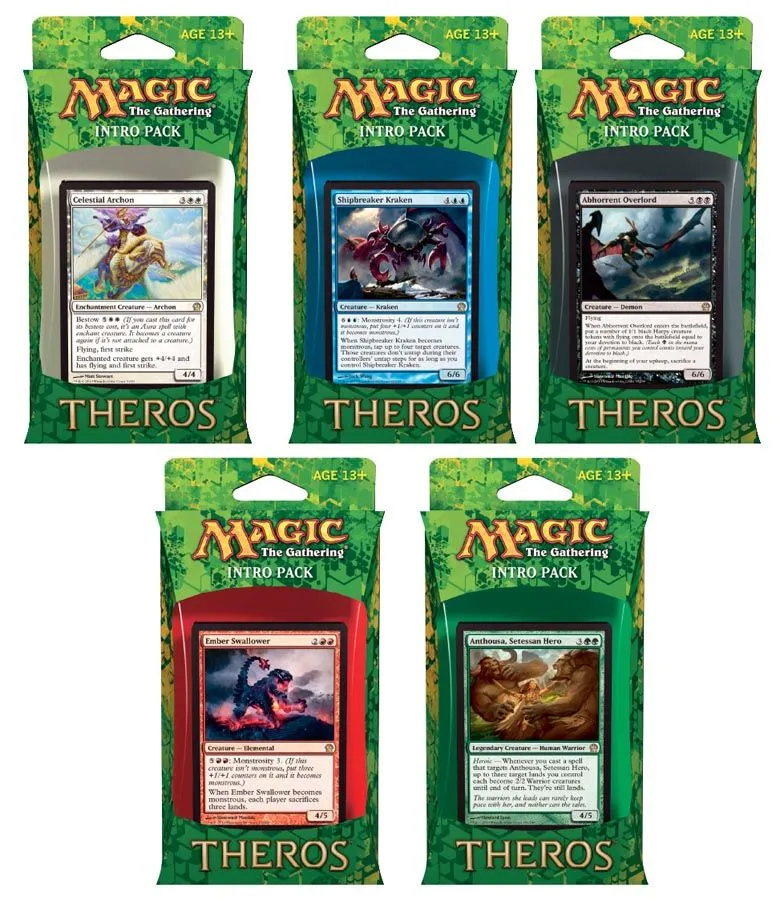 5er Set mit allen verfügbaren Intro Packs der Magic Serie Theros in Deutsch.